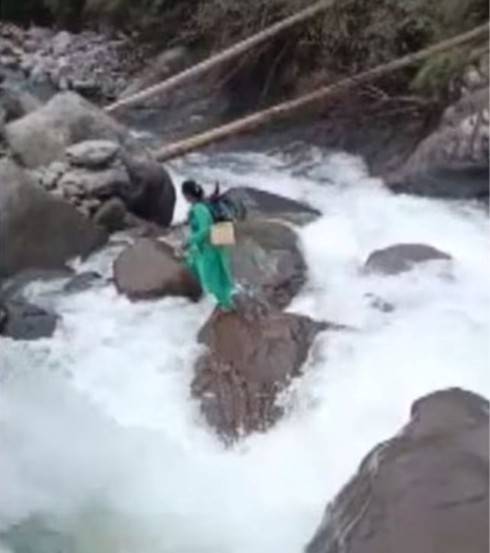 Amid this crisis, a two-month-old infant in Hurang village required life-saving vaccination. Undeterred by the danger, Kamla Devi carried her vaccine box on her shoulder and bravely leapt across the swollen Swad stream to reach the village. She administered the essential doses, ensuring child’s protection.